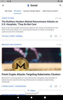 Cyware Social este o aplicație dedicată informării profesioniștilor în securitate și utilizatorilor generali despre peisajul amenințărilor cibernetice. Descoperiți cele mai recente articole ale experților Cyware și actualizări esențiale din surse terțe, toate categorizate pentru o navigare ușoară.