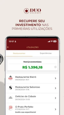 Transformă fiecare ieșire la restaurant într-o sărbătoare a gustului cu Duo Gourmet App, ghidul tău personal către cele mai rafinate destinații culinare. Descoperă o selecție meticuloasă de restaurante, cafenele, baruri și patiserii din apropierea ta, alese pentru a-ți oferi experiențe gastronomice excepționale. Cu Duo Gourmet App, savurezi preparate delicioase și te bucuri de un beneficiu unic: comanzi un fel principal și primești al doilea preparat, de valoare egală sau mai mică, din partea casei. Este modul perfect de a explora noi arome și de a-ți răsfăța papilele gustative, economisind în același timp.