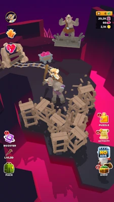 Cu un simplu târnăcop în mână, ești chemat să transformi nimicnicia în minune. Strânge peste 15 tipuri de resurse distincte, de la minerale prețioase la materiale de construcție esențiale, și folosește-le cu înțelepciune pentru a da formă viziunii tale. Târnăcopul tău nu este doar un instrument de muncă, ci și o armă redutabilă, capabilă să facă față amenințărilor ce pândesc în întuneric. Îmbunătățește-ți unealta divină prin opt niveluri succesive pentru a-ți spori productivitatea și a extrage și mai multe bogății. Pe măsură ce civilizația se dezvoltă sub privirea ta atentă, vei putea înființa unități industriale complexe pentru a topi metale și a prelucra minerale. Creează opt tipuri de arme puternice, inclusiv un topor cu opt niveluri de perfecționare și legendara sabie Excalibur, pentru a instaura respect în fața oricărui adversar monstruos.